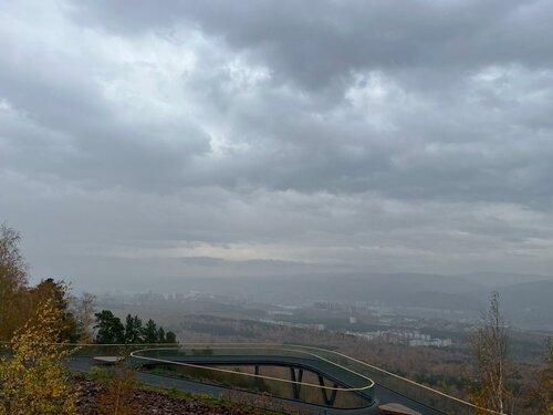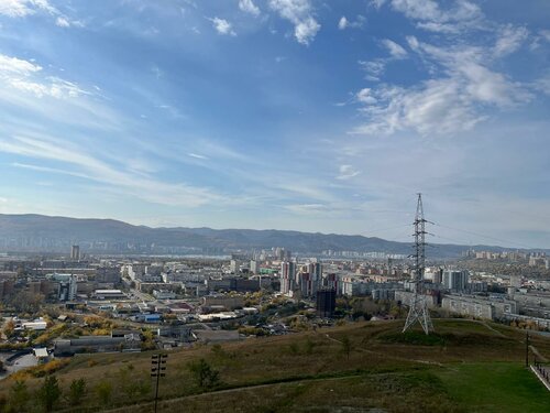 Отличная смотровая площадка. Вид на Красноярск. Есть парковка для авто. Внизу парк, много гуляющих граждан. Рекомендую в хорошую погоду, а то далеко не будет видно.