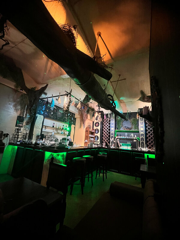 Очень классный тематический бар, с упором на волшебство, магию и мистику. Много разных залов с разной атмосферой и музыкой. Каждый день тут проходят различные мероприятия, афишу можно уточнить у хостес или на страничке заведения. Вкусно кормят, в меню все названия прописаны очень интересно, и каждый сможет выбрать себе необычное блюдо. Приходите наслаждаться атмосферой, и не забудьте свою метлу, тут есть для нее парковка.