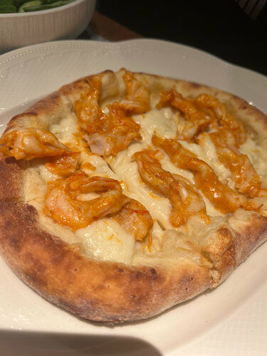 Не плохое место для посещения. Очереди на входе не было, посадили за стол для двоих с ограничением на 1,5 часа. Стол был очень маленький. Заказали много блюд, все на столе еле умещались. Официант очень долго не подходил чтобы принять заказ. Очень был вкусный краб дог с черной игрой. А рыбный сливочный суп, показался недосоленным и в нем плавала большая водоросль, которая не жевалась и ее из тарелки выловить было невозможно,. Очень красивая туалетная зона. Зона гардероба рассчитана под одежду короткой длины, пальто было вешать не удобно.