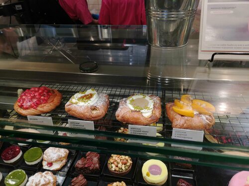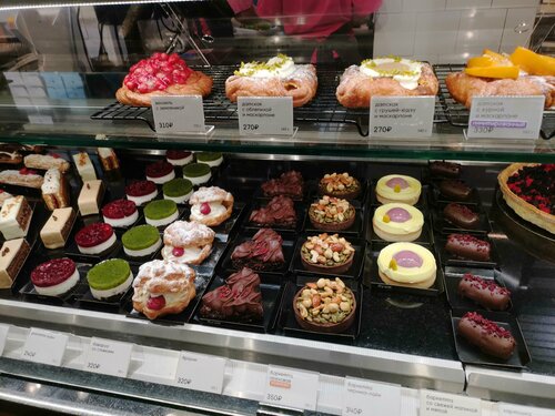 Милое кафе с отличными десертами. Особенно нравится круассан с сыром, всегда берем на завтрак. Большой выбор аппетитных новинок среди десертов!