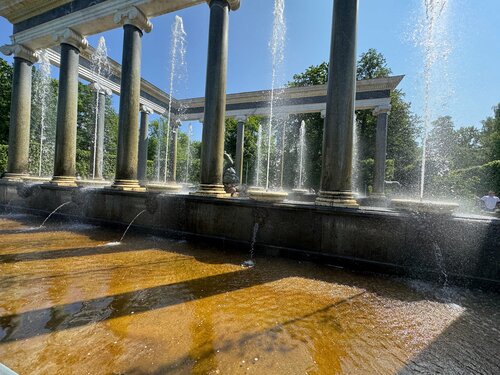 Нижний парк Петергофа — это просто бомба! (Ну а что ещё скажешь, когда за 2,5 часа успеваешь пробежать марафон по всем фонтанам, оставив позади 10 тысяч шагов и остатки рассудка.) Сын (9 лет) в восторге — ну ещё бы, его-то таскали как чемодан без колёсиков. Я — тем более, ведь кто, если не я, героически преодолел этот водный квест, чтобы потом написать об этом в блог? Не буду просто перечислять фонтаны (хотя, конечно, буду), а расскажу, как мы их покоряли (читай: носились как угорелые, боясь опоздать на электричку). Начало маршрута: от входа до Лабиринта Приехали в 9:45, фонтаны включают в 10:00, но ждать? Нет, мы же не туристы, мы — экспресс-туристы! 1. «Адам» – величественный, библейский, окружённый струями. Видимо, чтобы никто не забыл, кто тут главный праотец. 2. «Дубок» – милая обманка: смотришь на металлическое дерево, а оно тебя внезапно обрызгивает. Спасибо, Петергоф, за бодрость с утра. 3. «Елочки» – три скромные ёлки с водичкой. Видимо, для тех, кто ностальгирует по Новому году в июле. 4. «Водяная дорога» – тут внезапно включающиеся струи проверяют, насколько хорошо вы держите телефон в руках. Дети визжат, взрослые — тоже, но уже от паники за свои айфоны. 5. Римские фонтаны – белоснежные, шумные, фотогеничные. Идеальное место для фото с эффектом «я в Риме» (ну почти). 6. «Шахматная гора» – каскад с драконами, потому что просто ступени — это скучно. А вот драконы — это серьёзно. 7. «Пирамида» – вода льётся ровными слоями, демонстрируя, что даже в XVIII веке были перфекционисты. 8. Фонтан в Лабиринте – сам лабиринт больше похож на садик для медитации, но сын умудрился превратить его в фотосессию на всех четырёх скамейках. Гений контента растёт! Вдоль Финского залива: от «Солнца» до «Золотой горы» (Тут мы поняли, что парк огромный, а ноги уже не те.) 9. «Солнце» – вода вращается, создавая эффект солнечных лучей. Рядом купаются утки, которые, в отличие от нас, никуда не спешат. 10. Фонтаны у Монплезира – дворец прекрасен, но мы же не за культурой пришли, верно? - «Колокол» – водяной купол, под которым можно было бы спрятаться, если бы не одно «но» — он мокрый. - «Сноп» – центральная струя и 24 маленьких, потому что одного потока воды вам, конечно, мало. - «Диванчики» – можно было бы посидеть, если бы не вода. Но мы же не ищем лёгких путей! Посидели. 11. «Ева» – парная к «Адаму», потому что гендерное равенство даже в фонтанах. 12. «Львиный каскад» – не такой пафосный, как Большой, но львы есть, а это уже что-то. 13. «Тритон-колокол» – тут мы встретили белочку, которая, видимо, тоже решила, что вода в фонтане вкуснее, чем в луже. 14. «Гейзер» – струи бьют хаотично, создавая эффект «ой, что-то пошло не так». 15. «Золотая гора» – последний каскад, золото, мрамор, мощные потоки. Апофеоз помпезности. Обратный путь: от «Китового» до Большого каскада (Тут мы уже шли, потому что бежать не могли.) 16. «Китовый» – милый, с дельфинами, потому что кит в одиночестве — это грустно. 17. Итальянский фонтан – изящный, с позолотой, для тех, кто ещё не устал от роскоши. 18. Большой каскад – десятки струй, золото, грохот воды. Шедевр? Да. Устали? О да. Итоги Мы приехали рано, поэтому толп не было — зато были мы, наши 10 тысяч шагов и гордость за выполненную миссию. Жаль не успели в гроты - но это уже совсем другая история…