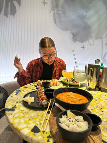 Самое лучшее место с вкусными роллами и тайской кухней. Огромный респект су-шефу, роллы были очень нежные и вкусные. Коктейльчики неплохие, советую брать что-то из спешла (если хотите разнообразия). И отдельное восхищение музыкой в зале, плейлист топ!!!