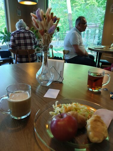 Просторное помещение, быстрое обслуживание. Мало видов чая, много роллов. На входе интересные экспонаты, расположен в историческом здании, атмосферные стены, прохладно