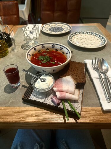 Мне заведение очень понравилось. Стало потрясающим завершением дня. Со мной были вежливы. Мне было невероятно вкусно и уютно. Что я попробовала: очень вкусный борщ (но не вкуснее маминого!), котлетки из краба, вкус которых останется со мной надолго (они были просто восхитительны!). Благодарю поваров 🙏🏻
