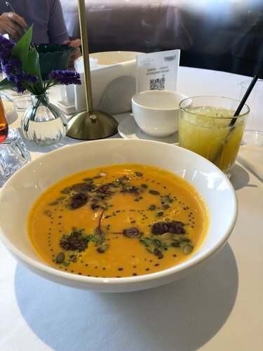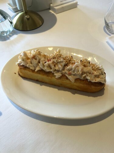 Очень понравился сервис, еда! Без лишнего пафоса! Краб-дог хотелось бы чтобы был теплый🫠 а так все шикарно. Видно, что ресторан давно качает, интерьер выдает некую «олдовость», но его это не портит! Так же видно что следят за уборной, это радует. Ребята молодцы!