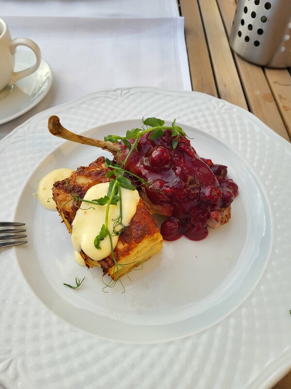 Очень вкусная кухня. Пробовала утку конфи, форель, луковый пирог, луковый суп, бифштекс, улиток, салат. Все на 5. Алкоголь очень приемлемый по ценам. С мужем в отпуске там и обедали и ужинали. Порция адекватна цене. Ужин с алкоголем на 2х выходил около 2500