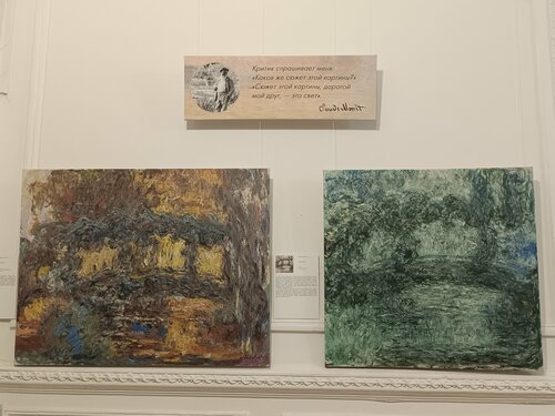 Очень интересная выставка работ в технике жикле одного из родителей импрессионизма. Собраны как известные работы, так и менее популярные, например, карикатуры из раннего творчества Моне. Можно взять аудио гид, который проведет по жизненому и творческому путям художника. Однако, я бы обратила внимание создателей выставки на ошибки в "речи" гида. Например, не верной постановке ударений. Так, например, француз ПиссаррО, стал испанцем ПисАрро...