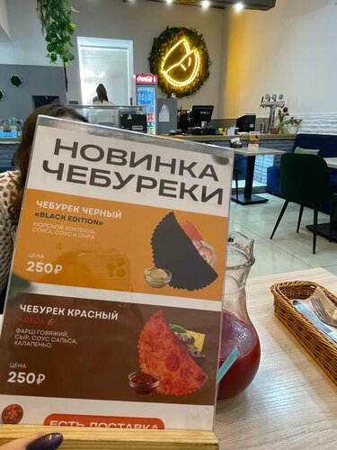 Чебуреки мне, если честно, не очень понравились. Заказывала с бараниной и с ветчиной и сыром. Баранина вообще не понравилась: ни запах, ни фарш, он был жестким, будто бы баран слишком долго жил… С ветчиной и сыром тоже не особо понравился. Огромные куски ветчины никак не гармонировали с тянущимся сыром. По итогу часть ветчины вывалилось. Тесто чебурека было очень хрупким и ломалось в руках. Морс их собственного приготовления был вкусным.
