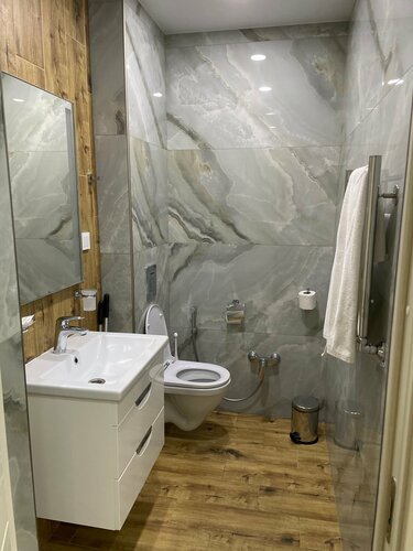 Сюит двухкомнатный. Плюсы. Близкое расположение к морю, отель стоит торцом к морю, поэтому ветра мало. Солнечно просыпаться, шикарный вид из панорамных окон, окна открываются. Шикарные завтраки (особенно по выходным: мидии, спаржа, капрезе, а так же основные блюда недели сохранены + игристое). Ужин можно заказать внизу в ресторане-принесут в номер. Номер убирают каждый день. Бассейн отличный для этих мест, тренажерка через стенку с бассейном. Расположение отличное: рядом парк с колесом обозрения, канал с лебедями и уточками, пляж в 2 минутах. Минусы. Убита немного сантехника, чайник с сильным запахом пластика и сломанной крышкой, маловато пространства для двухкомнатного номера, первые дни отопления не было, в бассейне было холодно, раздевалки ледяные. Нет территории для детей на улице. Летом, скорее всего, машину ставить негде, стоянка мизерная рядом. Но в октябре-норм. Охраняемая и бесплатная. Несмотря на мелкие недочеты - было уютно, спасибо!!