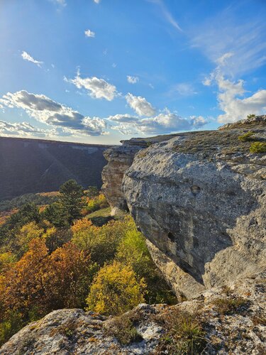Тепе-Кермен отличался от других пещерных городов Крыма своей планировкой. В отличие от Эски-Кермена или Чуфут-Кале, он не был крепостью в классическом понимании этого слова. Тепе-Кермен, скорее, представлял собой монашеский скит, где монахи-отшельники жили в пещерных кельях и молились. А то почитав отзывы что пишут люди, волосы дыбом стоят, откуда 🤷 берут информацию, не понятно. Сочинение с Википедии и только. Путь средней сложности. Высота 544 м. НЕ надо лезть в гору в лоб в тапочках и в жару! Подняться на гору проще всего с северного склона, откуда на вершину ведут 2 тропы из Машино или Кудрино, сначало через лесок, потом подъём достаточно крутой и каменистый. В мокрую погоду лучше не ходить, если вы обычный турист, камни и глинистая почва очень скользкие. На плато сосредоточено около 250 искусственных пещер, некоторые из них располагаются в несколько ярусов. Особенной достопримечательностью города Тепе-Кермен является неплохо сохранившаяся пещерная церковь VIII века.