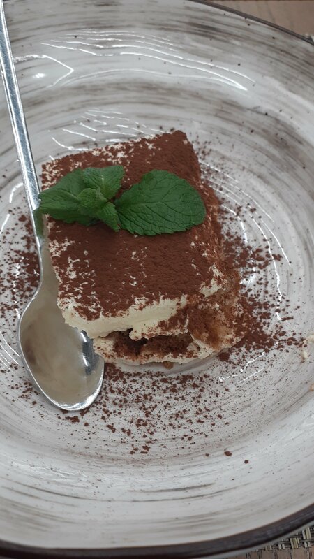 Тирамису был кривой, как будто непрофессионал накладывал, корж был поломан, с одной стороны его не было, весь скомкался на одну сторону. А может, уронили. К капучино не подали сахар. Девочки три раза приносили меню, хотя у меня уже взяли заказ. Зато смело можно было уходить, не оплатив - не дозовешься.