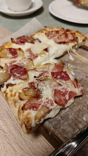 Находится пиццерия в общем-то в центре, но кто в первый раз только по карте. Пришли мы, посетителей нет, хотя выходной 4 мая. Для меня это плохой сигнал. Значит, плохая посещаемость и устаревшие продукты. Тем не менее мы остались, т.к.обещали ребёнку пиццу. Пока сидели зал полностью запомлнился. Пицца оказалась вкусной, тесто тонкое, мягкое. Обслуживание быстрое, вежливый персонал. Снижаю оценку за то, что очень тесно.