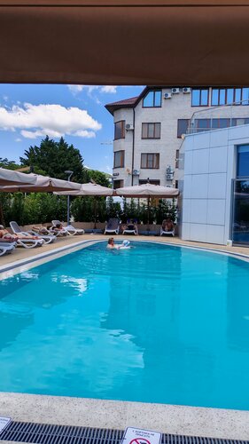 Если придется поехать в Ольгинку и не за свой счёт, я выберу, конечно, Алеан. Для меня плюс: то что новый, современный, есть микроволновка и чайник в номере, есть крытый подогреваемый бассейн, в который можно попасть не выходя на улицу. Альтернатив в этом посёлке нет. Но денег своих он не стоит. Т.к.у отеля 4 звезды, то возникает много вопросов. Уборки нет, к вам приходит тётя в интервале с 17 до 20:00, выносит мусор и ставит бутылку воды. И все. Ни смены полотенец, с которыми вы ходите на пляж и в бассейн, ни пропылесосить, ни убрать после прихода сантехника (мы его вызывали, но узнали о его приходе по огромным грязным следам на полу в ванне и в душе, которые никто так и не убрал до нашего отъезда). Добавлять чай и сахар - не положено, только в день заезда. Отдельная тема завтраки. Все постояльцы не помещаются в ресторане и на террасе. Стободных столов не найти. А если есть не занятые, то они не убраны. При этом сотрудников тоже нет на горизонте. Поэтому ждёшь, пока уберут, потом сам бегаешь ищешь ящик с приборами, потом солонку. Квест. Еда. Как сказала моя 8-летняя дочь: у них меняется только форма макарон. Т.е.не однообразные завтраки, а прям одно и то же. За три наших завтрака чередовалась начинка в варениках и блинчиках (картошка/творог и сгущенка/творог) и всё. Красная рыба была, да. Некоторые постояльцы накладывали по пол подноса. Из фруктов видела на тарелках грейпфрут и всё. Ни салатов, ни картошки, ни фруктов сезонных, ни жарящего при вас яичницу повара. Макароны, сосиски, колбаса, размороженные вареники и блинчики, ну хоть омлет да яичница. Сок быстро заканчивался, дети пили уже воду. Тут претензия к руководству: персонала мало и неопытный, и все деньги ушли на красную рыбу, на остальное не хватило. Крытый бассейн понравился, не маленький. Спасатели молодцы, гоняют особо шумливых/брызгающихся/прыгающих. Открытый басик холодный, поэтому там почти никого не было. И нас тоже. Ставлю свои 4 звезды за новизну, басик и микроволновку. Но официальный рейтинг в 4 звезды отель не отравдывает. А, ещё тапки странные: я со своим 37 р-ром еле одела)