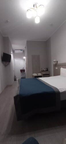 Отличный отель! Вежливый и приветливый персонал. Номера находятся на 3 и 4 этаже, есть 2 лифта. Просторный номер, огромная кровать с удобным матрасом, по просьбе донесли махровый халат. Номер чистый, уютный. Мыльные принадлежности в полном комплекте. Чайная станция с чаем, кофе, сахаром. Бутылочки с чистой водой. На этаже был фонтан с водой, но вкус воды не понравился и купила бутыль воды в магазине в ТЦ Дирижабль по соседству с отелем. Очень удобно что справа от ресепшн отдельный выход в ТЦ. То есть можно в буквальном смысле в тапочках выйти в ТЦ в магазин за чем-то необходимым. Кафе при отеле тоже очень уютное. Завтрак и ужин можно выбрать по желанию. Всегда очень вкусно и большие порции. Всё очень понравилось. Процветания и благополучия Вашему отелю!
