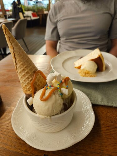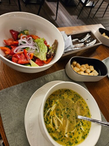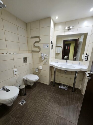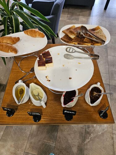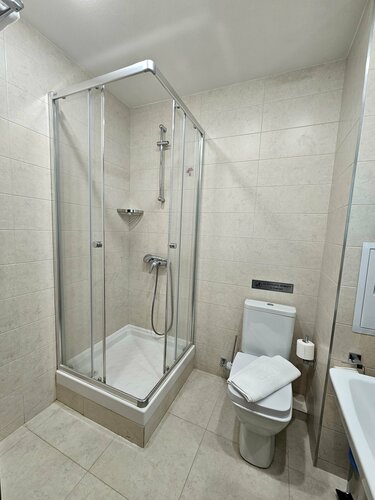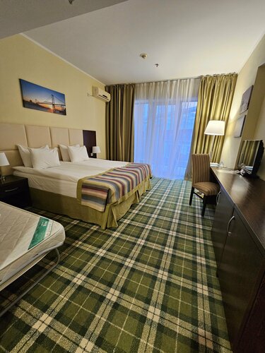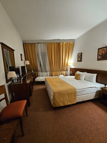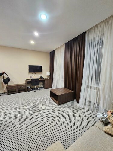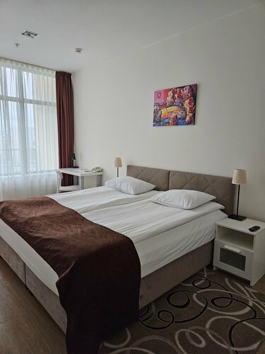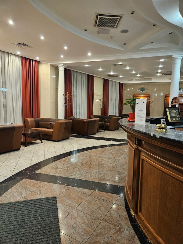 Парковка маленькая, но есть возможность запарковаться вдоль дороги, на ночь бесплатно.Отель находится близко к центру. Приехали мы поздно, встретили нас как будто мы здесь живём давно, информацию о завтраке дали только когда мы спросили. Номер просторный, все есть[ халаты, водичка, чай, туалетные принадлежности, тапочки предоставили 3 пары, часто про ребёнка забывают, халаты только для взрослых.] Кровать большая, матрас жёсткий, для нас плюс, для ребёнка раскладушка, тоже хорошая. В чайных принадлежностях был рассыпан сахар, постель местами с пятнами, я не придираюсь, просто 4 звезды) в номере тепло. Завтрак. На первом этаже в ресторане. На мой взгляд сотрудники, отмечающие комнаты должны стоять при входе ,а не кричать на весь зал номер комнаты, а мы им в ответ тоже должны кричать, атмосфера комфорта растворилась в один миг. Далее яичница с пылу с жару, зачем так усложнять процесс, если можно поставить уже готовые на подогреваемй поднос, бедный мальчик не успевал, нервничал и надо было стоять и караулить свой заказ, стандартный ответ подходите через 2 минуты. Шведская линия на 4 звезды не соответствует. Голодными не уйдёте, но если планка высокая сервис должен соответствовать - октябрь 2024. Дополню отзыв. Ноябрь 2025. Ресепшен был более внимательный, но шлагбаум открыли не сразу. В номере чистоты больше не появилось, рассыпан сахар, бутылка под кроватью, пятна на постеле. Завтрак. Работали молодые люди, на мой взгляд лучше справлялись , чем девушки в прошлом году. По крайней мере никто не кричал про номер комнаты, убирали тихо. Но было невкусно, совсем, даже каша, сосиски ужасные. Нужна косметика в номерах. Расширить шведскую линию и повысить качество продуктов. Понравились картины в номерах - тематика цветы. А еще ровно в 12 нам позвонили с ресепшена и спросили спускаемся мы или нет, на самом деле это первое место где так "беспокоятся " о гостях, лучше о чистоте номеров так переживали. Безусловно отель строился как 4☆, но сейчас с трудом можно поставить 3☆.