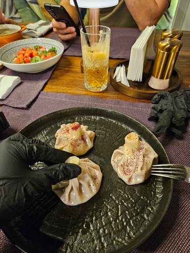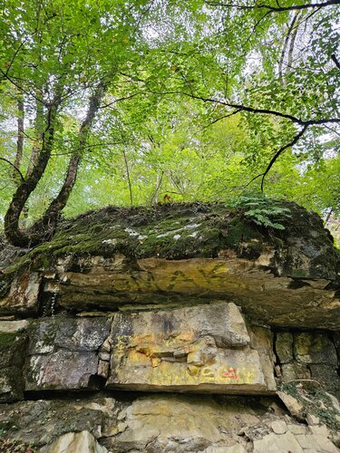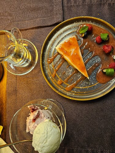 Какие виды вокруг. От главной достопримечательности через 150м располагается кафе. Здесь как дома, гостеприимство зашкаливает. Вкус национальных блюд. Оплатить желательно наличными, но можно и переводом. Туалет на улице. Умывальник тоже. Хозяин, как я поняла облагораживает это место и за это ему большой поклон. Колоритно, аутентично. Мы пробовали пирог с картошкой, салат, котлеты, гречу и невероятный чай. Есть качели с видом на горы. Готовят две прекрасные бабули. Желаю процветания и побольше клиентов.