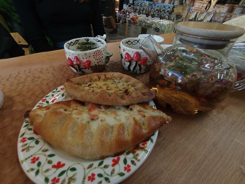Отличное атмосферное местечко, понравились очень ребята которые там работают, видно что делают с любовью к работе, по вкусу 10/10, подача и атмосфера 1000/10 , прекрасный чай, особенно понравился Карельский дзен, понравились калитки с олениной и форелью это топ продаж. Из минусов только , то что недостаточно количество столиков,мы приехали в августе и было достаточно людно каждый раз, но стоит того чтобы подождать сесть и покушать именно в заведении потому, что атмосфера прибавляет вкуса +100 Рекомендую обязательно всем♥️