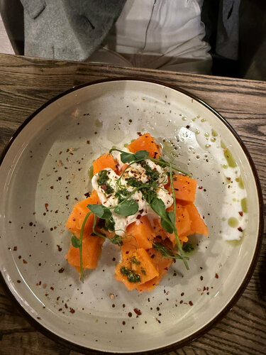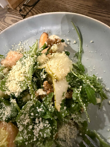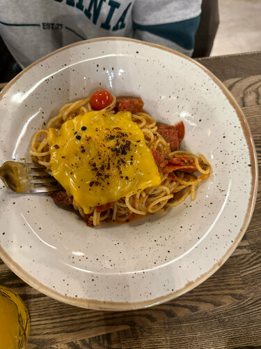 Смешанные впечатления. Есть куда расти. Вчера семьей ужинали. В целом, неплохо, но есть серьезные замечания по кухне и напиткам. Что конкретно не понравилось: Салат с рукколой: Руккола была старой и не перебранной. Листья были не просто вялыми, а долго лежали в масле, превратившись в неаппетитную склизкую массу. Это главный минус. Паста: Моя паста была переваренной, не "аль денте". А паста жены и вовсе напомнила ей лапшу из детсадовского супа — очень простой вкус, будто на молоке, а не на сливках. Не хватило качества и плотности текстуры. Десерты и напитки: Выбор десертов очень скудный. Нет нормальной винной карты — только пиво. Хотелось бы видеть, например, хорошее безалкогольное вино (где спирт выпарен), чтобы было чем сопроводить ужин. В целом: Место с потенциалом, но пока кухня работает нестабильно. Можно поесть, если рядом и очень хочется пасты, но ждать чего-то изысканного не стоит.