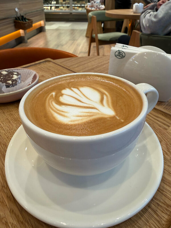 Заказал капучино. Чашка — мощная, толстостенная, в руке лежит отлично. Но холодная. И кофе из-за этого остывший, не горячий, как должно быть. По крепости норм, бодрит. Но вкус слабоватый, чувствуются слабо обжаренные зерна. Не хватает насыщенности. Еще взял шоколадную колбасу «в ностальгию». Вкусно, хотя и не так круто, как в детстве помнится. Итог: В целом неплохо, но прогревайте чашки — это сразу улучшит вкус.