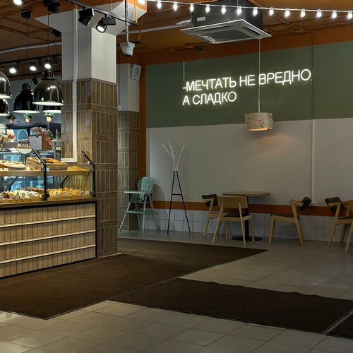Просто замечательная пекарня с кафе. Здесь хорошо все: начиная от сотрудников , которые приветливо встретят тебя на кассе , подскажут по ассортименту, Потрясающе вкусные десерты и прекрасный кофе. Я как кофеман не могу этого не отметить . Мой выбор был капучино на миндальном молоке, и мой фаворит - морковно тыквенный тортик🧡 . Есть кафе, уборная, можно купить продукцию пекарни , кофе , обеды , заморозку (пельмешки и тп) . И все действительно по очень хорошим ценам. Чисто, атмосферно, вкусно и приятно. Буду в прекрасном Санкт-Петербурге, зайду и не раз 🤍