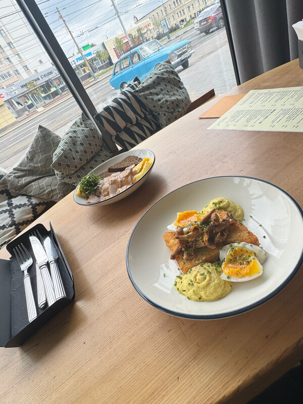 Уютное кафе , вкусный завтрак разнообразное меню на завтрак . Приветливые официанты . Спасибо официанту Ангелине !