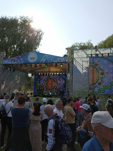 Был солнечный, тёплый, душевный день. Суббота 01.07.23 в парке Коломенский был праздник Сабантуй (Праздник Плуга) . Национальный праздник республик Башкортостан и Татарстан. Национальные костюмы, ярмарка всяких вкусностей, весёлые концерты и конечно же игры, борьба, аттракционы и ннародные танцы и пляски. Цены конечно же на продукцию и сувениры аховые. Очень хорошо организовали территории по республикам концертные зоны, выставки и фон для фотографирования. Очень обрадовало всю мою семью, то что построили стационарный туалет и так много кабинок было. Есть такое мнение, у моих родных, что нет беседок и скамеек в зоне где был праздник. После дождя накануне земля была сырой и сидеть на траве было не очень комфортно. .