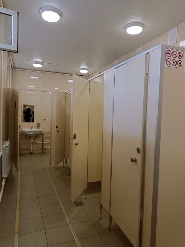 Чистый, без неприятного запаха. Есть туалетная бумага при входе. Бесплатный.