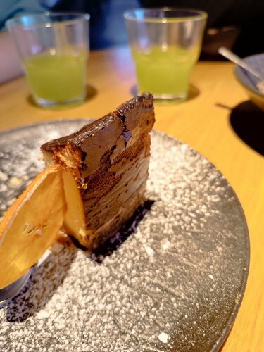 Из плюсов: + красивый бар + атмосфера Из минусов: - принесли блюдо одному из троих. Пришлось ожидать ещё 8 минут, чтобы принесли другие блюда. - принесли холодное блюдо, попросили подогреть, перегрели. Не страшно) - ожидание напитков более 10 минут( - поздравление вышло грустным. Тихо подошли, поставили подгорелый тортик, сказали поздравление и ушли. Исправьте данный нюанс, иначе нет никакого смысла в поздравлении тортиком( - подгорелый чизкейк✌