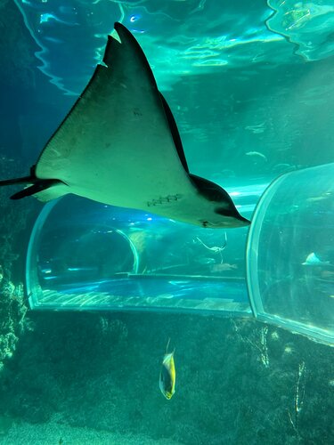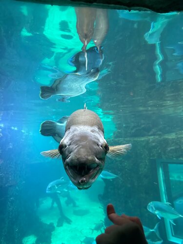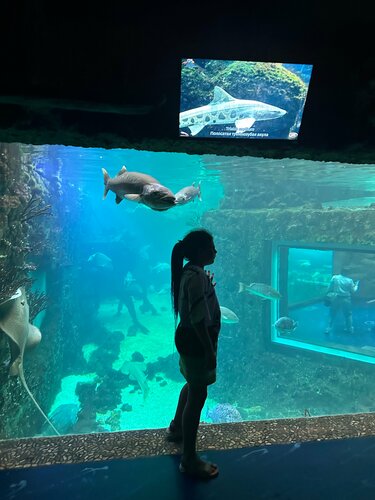 Океан три ум может и большой , но в туристический сезон ходить то еще удовольствие. Очередь в кассу , толпы внутри и очень жарко. Большое количество рыб, есть нерпы .