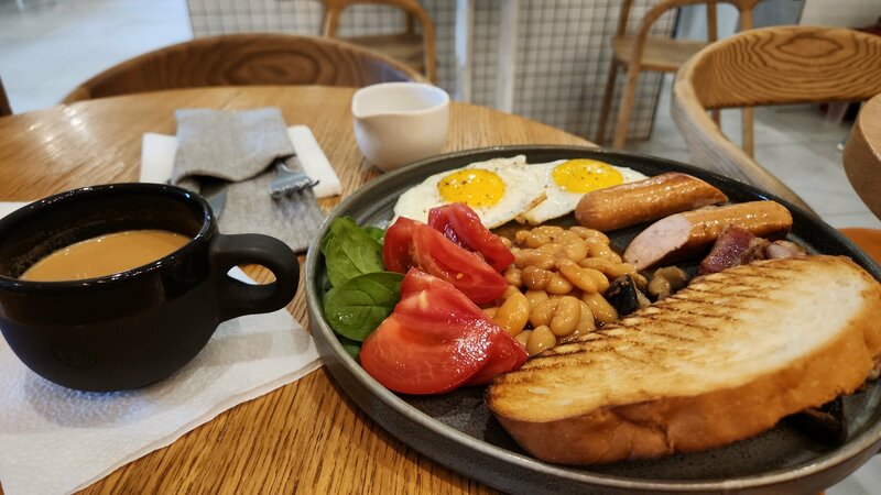 Уютно, спокойно, нет навязчивости, всё выглядит очень просто и при этом на вкус вкусно и качественно. Приятно, что по будням заведение работает с 8 утра, здесь можно отлично позавтракать. На фото завтрак, который называется английским. Рекомендую