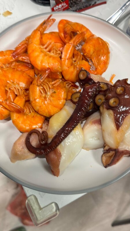 Купила вчера, креветки горячего копчения, липкие оказались, осьминога тоже есть не стали. 2700 просто вынесли котикам. Спасибо