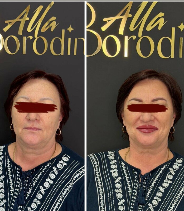 Я редко пишу отзывы, но в этот раз хочу рассказать о человеке, который по-настоящему влюблён в свою работу. С подросткового возраста мне приходилось тратить много времени по утрам, чтобы рисовать брови перед школой и университетом. Шесть лет назад я случайно попала в руки замечательного мастера — Аллы Бородиной. Она сделала мне напыление бровей и избавила от ежедневной траты времени на макияж. Все эти годы я следила за работами Аллы и очень хотела привести к ней маму. Ранее маме неудачно сделали татуаж: дважды удаляли ремувером и трижды лазером. В результате остался серый, неестественный пигмент и шрамы. После такого опыта мама боялась снова довериться мастеру. В ноябре я записала её к Алле, и только в начале января мы наконец попали на процедуру. (Мама живёт далеко от Москвы и приезжает сюда редко — раз в три года.) Алла не только переделала брови, но и выполнила камуфляж в зоне шрамов. Также мама согласилась на татуаж губ, который невероятно ей подошёл. Я впервые за несколько лет увидела по-настоящему счастливое лицо мамы. А ведь ей очень сложно угодить 🙂 Ей очень понравилась новая форма бровей и аккуратные, естественные губы, о которых она мечтала всю жизнь. Спасибо Алле за её волшебные руки, профессионализм и чуткое отношение. Рекомендую от всего сердца и искренне надеюсь, что как можно больше женщин попадут к Алле и будут так же сиять своей новой красотой, как моя мама. на фото как раз моя мамулечка : До и После
