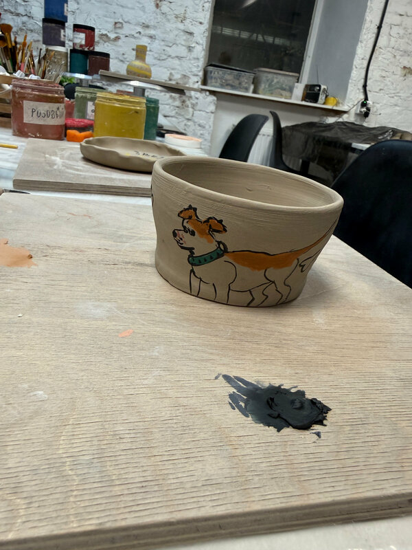 Сегодня было свидание в гончарке! Я впервые слепила на гончарном круге горшок для цветов и слепила ручной лепкой блюдечко, и расписала ангобами! Я в восторге от этого процесса, спасибо моим учителям Марине и Валерии. На фото мои шедевры, собачки это Рикки и Умка )) пока без обжига ) но совсем скоро они будут готовы)