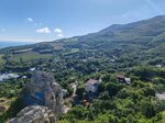 С больших окон прекрасный вид на Ялту, горы и море!!! Качественный ремонт входной группы, отличный современный лифт. Уютный дом и мало соседей!)