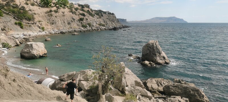 Дикий пляж. Место отличное для тех, кто любит плавать с масками - нереально колоритное дно! Правда здесь галька, лучше прихватить обувь для гальки. Вода очень чистая. С детьми можно, но под присмотром, так как валуны на дне тоже есть и рифы. Можно прыгать с камней после осмотра дна с масками. Раздевалок нет, народа мало. Спуск к бухте с горы, временами ступеньки, временами гора, будьте готовы, что спуск и подъем не простые. Мы попали с волнами, это осложнило заход в воду по камням. В штиль здесь будет невероятно красиво и эффектно! К тому же с волнами было много медуз, вроде и не жалятся, но приятного мало. Парковки как таковой нет, едешь по серпантин и навигатор говорит "вы приехали", есть карман для 3-4 авто. Рекомендую место к посещению.
