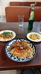 очень хороший узбекский плов делают. стоит сейчас 350₽ порция. беру его с собой. уже раз 10 брал. большой плюс, что круглосуточно. в любой момент можно подъехать взять с собой плов или на месте покушать. я очень люблю узбекский плов, тут одно из лучших мест Москвы в этом вопросе. даже в ресторане Узбекистан в центре Москвы плов меня так не удивлял. остальное меню я не пробовал. ещё брал лепешки из тандыра - тоже отличные. сосиска в тесте хорошая. самсу брал, вкусная, но очень жирная.