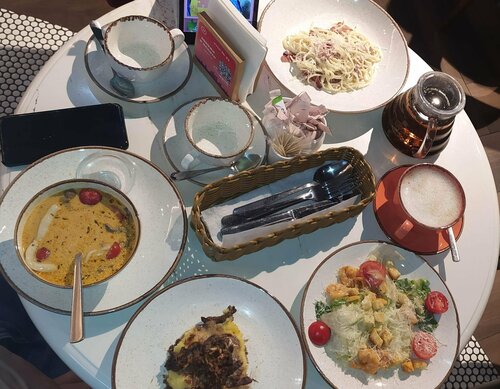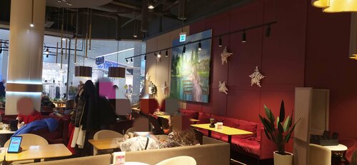 Эту сеть кофеен знаю очень давно. Захожу в неё аж с юности. Вот решила посетить данный конкретный филиал в Бутово молле. В целом бы вроде всё нормально в плане обслуживания, обстановки, оплаты и т.д. Я даже воспользовалась планшетом на столах, хотя не особо их люблю. Однако качество приготовления блюд здесь всё-таки хромает. Не в обиду поварам, но нужно обратить на сие внимание. Цезарь с креветками, в принципе, сносный, но сухарики в нём, очевидно, давно уже просроченные, лежат лет эдак сто, наверное. На вкус они соответствующие. Мой горячо любимый и обожаемый десерт - блинчики с маком и ванильным соусом ужасно разочаровал. Шоколадница уникальна этим потрясающим десертом и его нигде больше не встретить. Тут они, во-первых, расползлись; видимо, в процессе разрезания и соус меня шокировал. Он откровенно кислый, просто буквально, как кефир. Возможно, изменили рецептуру, но раньше он никогда таким не был. "Легендарные блинчики Шоколадница" и вот эти конкретные с маком всегда были особенными и очень вкусными. Но здесь засада... Также меня не вдохновил бефстроганов с картофельным пюре. Какой-то он совсем маленький и довольно странный на вкус. Предположительно, так и должно быть, ибо я его брала уже очень давно и что-то не особо помню... Не знаю... С трудом натягиваю оценку на 4 звезды. Буду ли ещё заходить, пока не решила. По обстоятельствам.