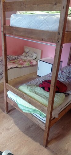 Останавливались на 1ночь, поселили на 2этаже. Это ужасно... Организаторы, неужели вам не стыдно предоставлять такие условия? Во-первых непонятная вонь во всем хостеле, невыносимая. Вопрос решили проветриванием и половиной баллончика освежителя. Во-вторых, грязные стены и мебель, а туалет за шторкой это "гениально"! В третьих, убитые годами матрасы - пружины так и пытаются вырваться из этого места, а грязная обивка их не пускает. Вата в подушках воняет, скомковалась, наверное, года два назад, спали свернув одежду под голову. Постельное белье тоже не меняли лет 5... Самое лучшее, что здесь есть - безобидные тараканы, они нас не трогали, просто бегали рядом. Звезда только за приветливый персонал.