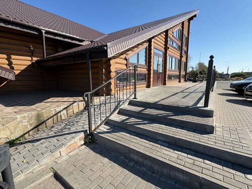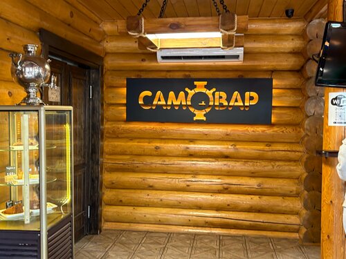 Надоело заезжать в сетевые столовые по трассе. Заехали в местечко с гостеприимным названием «Самовар». Домик в стиле бревенчатой избы. На крылечке сидит расслабленный медведь, позади него, за стеклом видны самовары. Несколько ступеней на входе, есть пандус с перилами обеспечивающий, по итогу, беспороговое пространство. Сдержанный интерьер, оригинальная самодельная карта России с её областями (стоило бы поработать над их соответствии по масштабу- особенно Крыма). Внимательные юные сотрудницы, работающие чётко, без лишнего шума и суеты. Чистые туалеты. Ненавязчивый музыкальный фон. Ооооочень демократичные цены. Преимущественно славянская кухня. Брали: борщ за 230₽ (к нему гренки со смальцем- его, ну очень мало). В борщ сразу кладут сметану, что мне, совсем не нужно (лучше б отдельно подавали сметану к борщу). Борщ не удивил. Эскалоп с помидором и сыром за 300₽ (сыру не пожалели) - норм. Котлета рыбная за 160₽ - вкусно. Картофельные драники со сметаной за 420₽ (не зашли), красная рыбка 30 гр за 170₽. Компот за 60₽ - вкусно. Особенно мне понравилась гречка с грибами и жареным луком ( гречка также обжарена, как я люблю) за 140₽ - пальчики оближешь! Сытно и недорого. Всем спасибо.