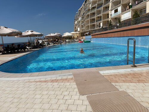 Парк- отель «Бухта мечты» 4 звезды. Расположен в живописной бухте. Есть и подземная и открытая (на набережной) парковки, вас припаркуют на подземной, если будут места (с местами там проблема, так как есть собственники и есть отель). Межпространственное перемещение по электронным браслетам (это очень удобно- без ключей и карточек) В самом отеле беспороговое пространство, но порог в душевой очень высокий - 30 см высотой. Есть спа- зона, где в стандарт входит бесплатное посещение закрытого бассейна, сауны, джакузи, римской бани, тренажёрного зала (оборудование тренажёрного зала весьма аховое), пользование лежаками, зонтами от солнца. Также два открытых бассейна, детская площадка. Есть и теннисный корт (за допоплату). Номера и балконы большие, со столиками, креслами. В комнатах можно и хорошо расположиться отдохнуть и поработать на дистанционке. Большие санузлы. Есть все необходимы принадлежности, кроме освежителя воздуха, но в санузле хорошая вентиляция. Вход в воду, в основном с пирса, по отвесной лестнице, шагом ступеней 25-30 см, достаточно утопленная нижняя ступень, что позволяет людям с ограничением функций нижних конечностей, подняться не сильно напрягаясь. Есть небольшой вход и с берега, но там есть камни. Подход от отеля до зоны выхода на набережную по ступеням высотой до 15 см, от 4 до 9 ступеней без перил, затем на набережную (к лестнице в воду) ещё одна лестница с разновысокими ступенями от 12, до 25 см высотой, с перилами. Спасателей на пляже нет, но и сильно активных аттракционов нет также. Невдалеке работает дайвинг- клуб. Иногда ребята проплывают под тобой. Их выдают пузыри воздуха, поднимающиеся на поверхность воды. Плавание с маской в камнях у берега, весьма интересно. Персонал крайне внимателен к посетителям, приветлив, ответственно относится к своей работе. Наблюдал, как сотрудница клининга, проходя по коридору, увидев, что на стенде кривовато расположен листок-вкладыш, поправила его, не пройдя мимо. По прибытии, вас, прямо на парковке, встречает сотрудник отеля, проводя краткую информационную прогулку до зоны работы дежурного администратора отеля. Вещи с парковки в номер помогает доставить портье. В зоне подземной парковки работает продуктовый, промтоварный магазины и фруктовая торговая точка. Фрукты все свежие, работают до 22 часов, промтовары до 21 часа. Смена полотенец и уборка в номере каждый день, две приветственные бутылочки воды 0,5 мл ежедневно. Единственный момент - слабый напор воды в душе. Но это уже зависит не от отеля. Всё остальное - супер! Отдых дороговат, но полностью оправдан уровнем сервиса.