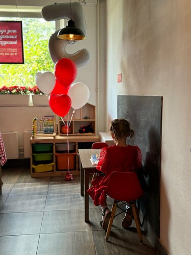 Интерьер очень приятный, чисто-стильно. К обслуживанию тоже вопросов не возникло, все быстро, вежливо. Но 2 звезды снимаю: - Во первых, отсутствие детского уголка/ комнаты (семейное кафе все же, а из развлечений только карандаши) - Вкус и качество блюд. Идя в кафе с таким ценником, ожидаешь как минимум, достойный вкус и натуральность. Морковный пирог за 340 руб напомнает бисквит-пятиминутку, куда сыпанули чуть моркови. Разочарование. Бургер также оказался максимально простым, по вкусу как бутерброд с котлетой и свежими огурцами. Кофе никакой. Взяли после посещения кофе на прогулке в какой- то кофейне - изумительный и в 2 раза дешевле.