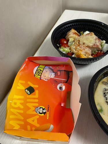 Отзыв относится только к доставке. При заказе девушка предельно приятная, цены средние/выше средних, доставка вовремя, еда достаточно вкусная, но не лучше многих остальных конкурентов. О минусах: доставщик редкостный грубиян, которому заказчик что-то постоянно ему должен, доставлено в мятых упаковках. Салат «Цезарь» выглядит отвратительно за свои деньги (470 рублей)!! На пицце нет наклейки гарантирующей, что доставщик не решил по дороге попробовать мою пиццу.