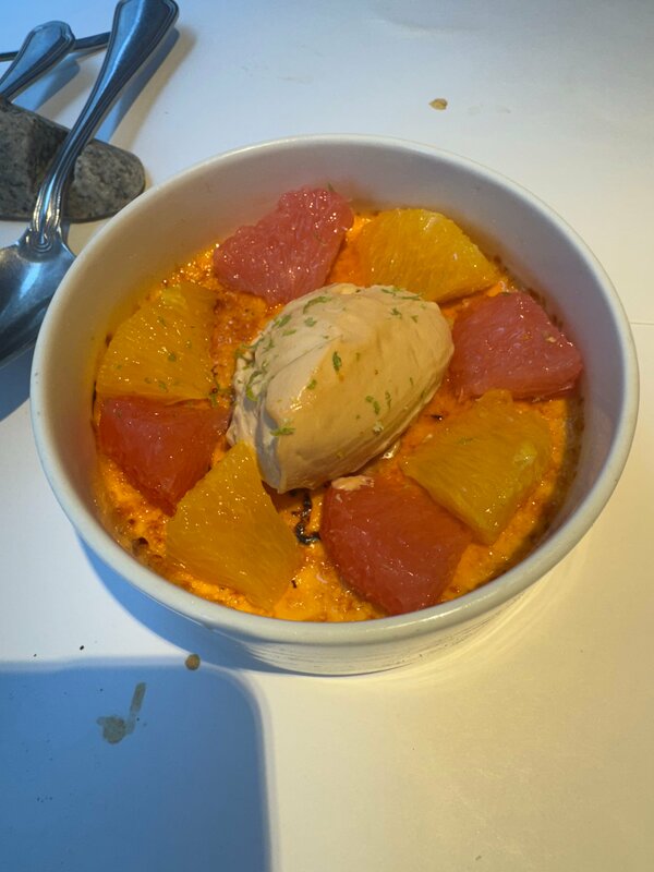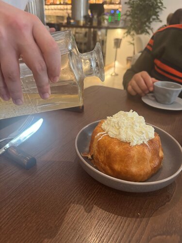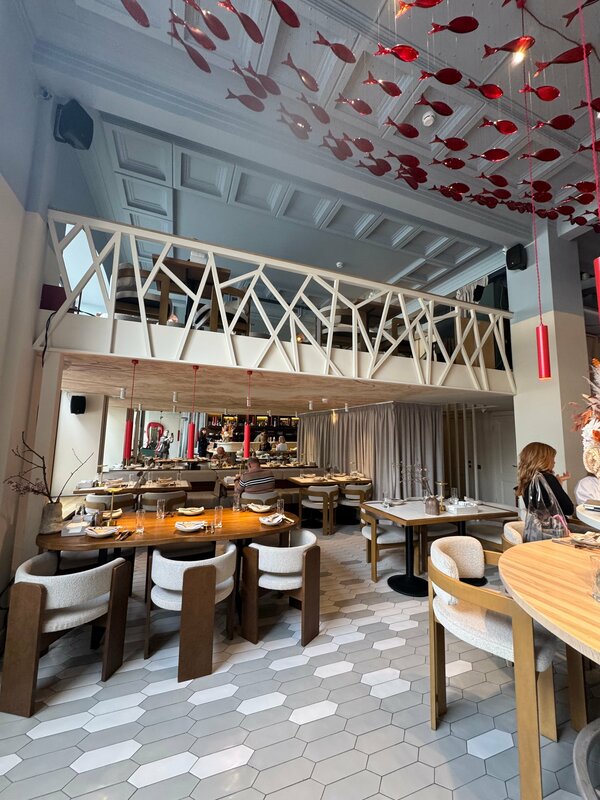Если вы хотите удивить и порадовать эстетически утончённую женскую натуру непременно пригласите её в это элегантное заведение. Интерьер очень красивый и стильный - современный элегантный авангард: плавные линии, светлые , сливочные тона и изящные декоративные акценты. Обслуживание тоже на высоте. А вот гастрономическая составляющая этого заведения не так уж , к сожалению прекрасна. В меню нет каких-то особенных новаторских гастрономических изысков, блюда вполне тривиальны , но всё приготовлено качественно и по моим ощущениям, из хороших продуктов. Цены стандартные для центра Москвы . Обед на двоих без спиртного 5 080 руб. Мы попробовали : сет хумусов с чипсами фило ( 850 руб) - 3 вида пюре из тыквы , баклажана и нута , приятная закуска; крабовые котлеты ( 1 050 руб.) - две небольшие котлетки и это конечно же не 100% краб , но вполне приемлемо ; телячьи щёчки с пюре и шпинатом ( 1 390 руб) - сытное блюдо с томлёной говядиной; овощи гриль ( 650 руб.) ; ром баба ( 850 руб) ; чай Хуа чжу ( 490 руб.). О ромовой бабе стоит рассказать отдельно . Подаётся большая булка со взбитыми сливками сверху и официант заливает её выбранным вами сиропом ( с алкоголем или без алкоголя). Десерт очень большой , его лучше брать на двоих . Сироп очень сладкий. Подача интересная , но мне такая ром баба не пришлась по душе , это скорее булка в сладком сиропе, чем настоящая классика. Итак вывод : очень красивое пространство с тривиальным набором блюд. Если вы консерватор и любите классическую кухню , это вам точно понравится.