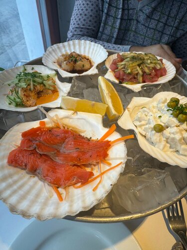 К большой моей радости в Москве стали активно появляться рыбные рестораны с адекватной ценовой политикой. Россию омывает 13 морей ! Множество озёр и рек на нашей территории. И согласитесь , очень не справедливо , что в нашем рационе совсем мало рыбы и море продуктов. И Охотка прекрасно помогает исправить эту ситуацию. Ресторанов «Охотка» на данный момент два : на Маросейке и на Сретенке. Мы посетили небольшой, но очень уютный ресторан на Маросейке ( он открылся в 2020 году). Обстоновка очень приятная несмотря на то что помещение небольшое и столики достаточно плотно расположены друг к другу. Открытая кухня, светлые тона в интерьере с изящной декорацией и чудесное обслуживание. Морепродукты и рыба ( как заявлено рестораторами этого заведения ) поставляются крупнейшей рыболовецкой компанией « Тихрыбком». Цены среднего уровня для центра Москвы. Обед на две персоны ( без спиртного ) 5 800 руб. Нам понравилось всё! Магаданский сет ( 1990 руб.) очень рекомендую: четыре вида морских деликатесов, порции не большие но очень вкусные ( креветка , гребешок, тунец , кальмар) . Тунец в огне ( 990 руб.) . Фетучини с гребешком в соусе Биск ( 1190 руб.) - сытное блюдо , гребешка не много , но очень вкусный соус. Стейк из Цветной капусты ( 550 руб) . Чай зелёный ( 390 руб) . Крем брюле ( 690 руб.) очень рекомендую- на кокосовом молоке с карамельным ганашем. Если вы всё же предпочитаете мясо, это ваше « извращение» в рыбном ресторане готовы удовлетворить - есть несколько блюд из мяса. И последний приятный штрих к портрету Охотки : в конце трапезы дарят сочный лимон каждому гостю. Почему лимон … ? Думаю потому , что лимоны прекрасное дополнение к морепродуктам Меня очень порадовало это заведение и я непременно наведаюсь на Сретенку в другую « Охотку».