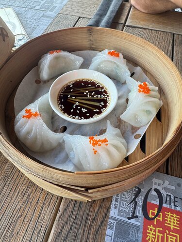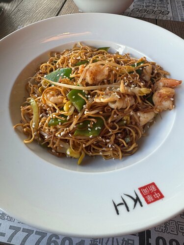 Этот ресторан - долгожитель , 10 лет он функционирует именном в этом помещении. И это не может не вызвать уважение . Рестораны в Москве , как грибы после дождя, быстро возникают и так же быстро исчезают. Остаться на плаву в ресторанном бизнесе очень не просто, очень большая конкуренция. Гуляя по Новому Арбату решили попробовать китайскую кухню в этом заведении, освежить воспоминания прежних визитов в этот ресторан . Могу констатировать - интерьер остался без изменений. Но это удручает .. то что было хорошо 10 лет назад , сейчас кажется « невзрачной столовой». Небольшие вкрапления китайского декора совсем не спасают это положение. Обслуживание - не навязчивая, отстранённая любезность. Подача блюд тоже не идеальна : закуски и горячее подали быстро , а десерт пришлось ожидать более 10 мин. Ценник стандартный для центра Москвы и подобного уровня ресторанов : салаты и закуски от 500 руб.; горячие блюда от 800 руб. Обед на двоих ( без спиртного ) 5 960 руб. Понравилось : древесные грибы ( 470 руб) , Дим-Симы с морепродуктами ( 5 шт. - 710 руб.) ; говядина в соусе «чёрный перец» - много говядины , приятная острота ( 1 190 руб.) ; хрустящие креветки по сингапурси ( 1 190 ) - вкусное хрустящее тонкое тесто фило оболочка креветки мне понравилось. Два блюда я забраковала : жареная лапша с морепродуктами ( 1 090 руб) - морепродуктов очень мало ( несколько кусочков кальмара и две креветки ) и отсутствие вкусного соуса.Жаренная лапша это флагман азиатской кухни и её очень трудно испортить , но в этом исполнении это было без вкусно и не ароматно. Жаренные ананасы в карамели ( 590 руб.) оказались искаженным исполнением этого классического азиатского десерта. Вместо хрустящей карамели была оболочка из теста ( что то подобное пончику). Чай Молисюцо ( 720 руб) и подача в специальной колбе для заваривания чая с термосом кипятка мне понравился , но цена не демократичная за чай. В итоге могу констатировать - пора делать абгрейд этому ресторану.