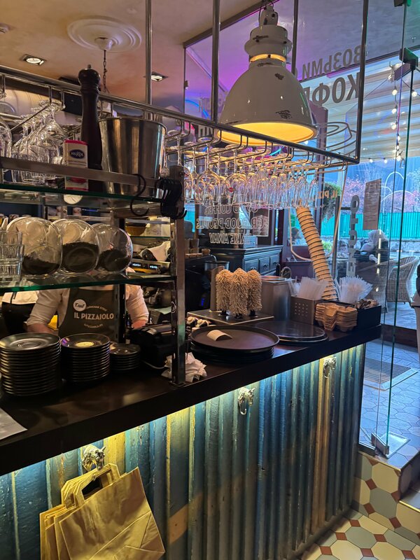 Приятно , что в самом центре Москвы существуют ресторанчики с прекрасным сервисом , вкусной кухней , комфортной атмосферой и с удобоваримым ценником ( цена большинства блюдо не превышает 1 000 руб.) . Обед без спиртного ( только зелёный чай) на две персоны стоил 4 000 руб. Очень рекомендую попробовать здесь пиццу ! Мы попробовали грибную (880 руб.) очень вкусно! Цеплёнок в трюфельном соусе ( 890 руб.) и салат креветки с авакадо ( 650 руб.) очень порадовали мужа. Десерт «Кофейное зерно» ( 490 руб.) , радость для любителя шоколада : нежной шоколадной мусс и хрустящее пралине . Парень обслуживающий наш столик был очень любезен и расторопен.
