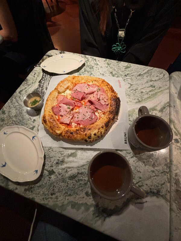 Небольшое заведение с очень стильным интерьером. Меню маленькое, но мы нашли что поесть. Пицца была очень вкусная. Обслуживание не понравилось, но обещали всё исправить и дали десерты в качестве извинений (они тоже были очень хороши)