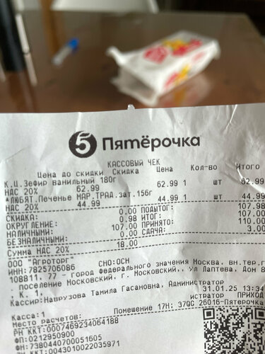 Всегда смотрю дату изготовления, тут просто спешила с ребенком. взяли зефир, продукт просрочен на полтора месяца… Из общего о магазине: ценники в перемешку или их нет, очереди вечером всегда, и подчинили бы наконец дверь в холодильник с творогом!!!а то стоит уже год, наверное, холодильник без дверей …