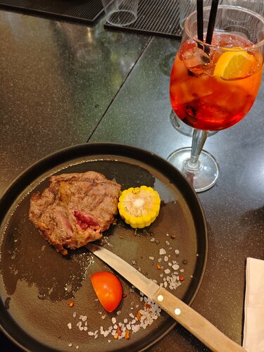 Отмечала День Рождения в The Бык 🎇 Отличное место, даже при наличии очереди в ресторан очень быстро нашли место для нас с подругой. Барная стойка не в коем разе, не уступает столикам 😏 Стейк и Мартини фиеро подняли настроение. Спасибо большое бармену Дмитрию за подробную консультацию по блюдам и напиткам) Конечно же , праздничный чизкейк вне конкуренции 🍰