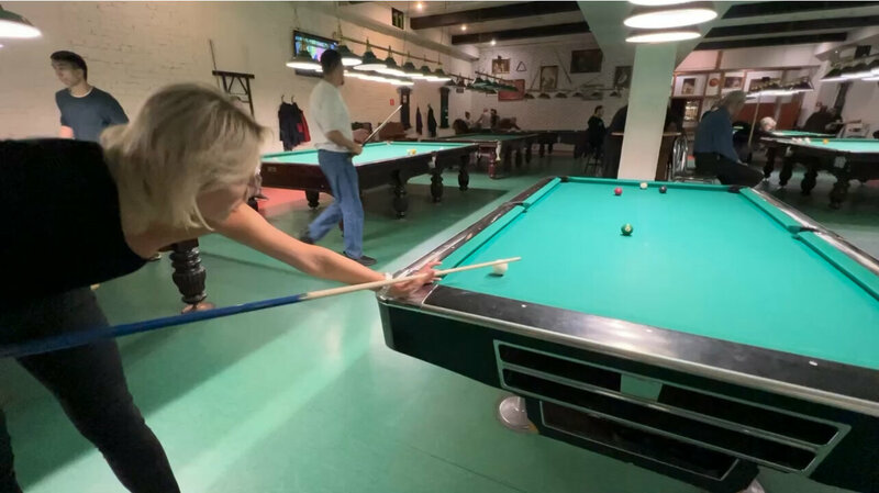 Отличный круглосуточный бильярдный клуб. Бронируйте столы заранее, в обычное время всегда битком. Бонусом можно и перекусить.